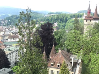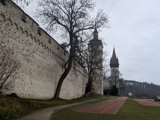 Súper big casttle-wall ish with many stairs and clocks inside, might be hard for your knees but worth visiting for the view :)
