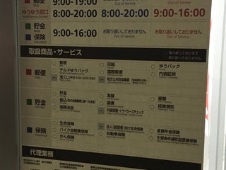 平日 weekdays: 9:00-19:00 for mail/stamps