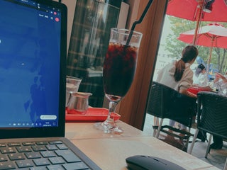 横浜美術館の向かい。テラス席が気持ち良い。家族連れにも人気の模様。