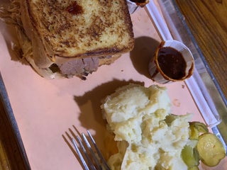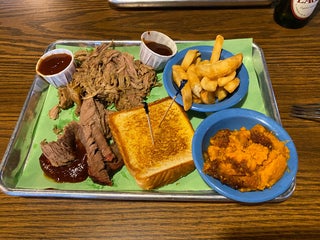 Great bbq! The pulled pork sandwhich is amazing & ribs are good too. Also love the jalapeño mashed potatoes & baked beans.