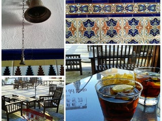 Realmente en el Patio del Balbona con carajillo en mano y dos señores tocando una Sabina.
