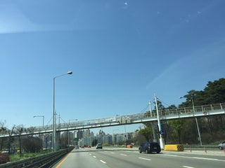 The footbridge is crossing Hill of Wind to Hangang Riverside Park smoothly. On the bridge, one can observe the eco-forest.
