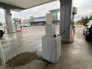 They keep the diesel in the back behind the market.